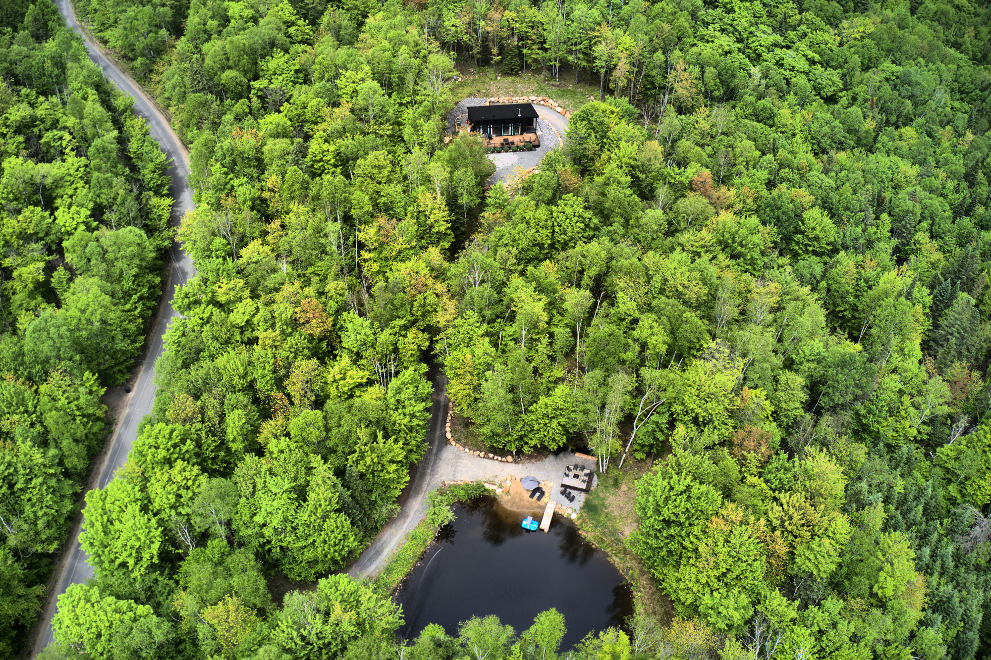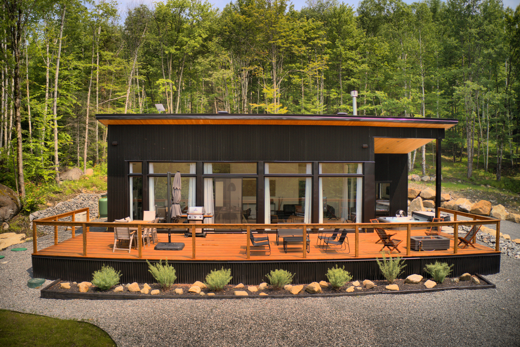 , from the private spa to the surrounding forest.